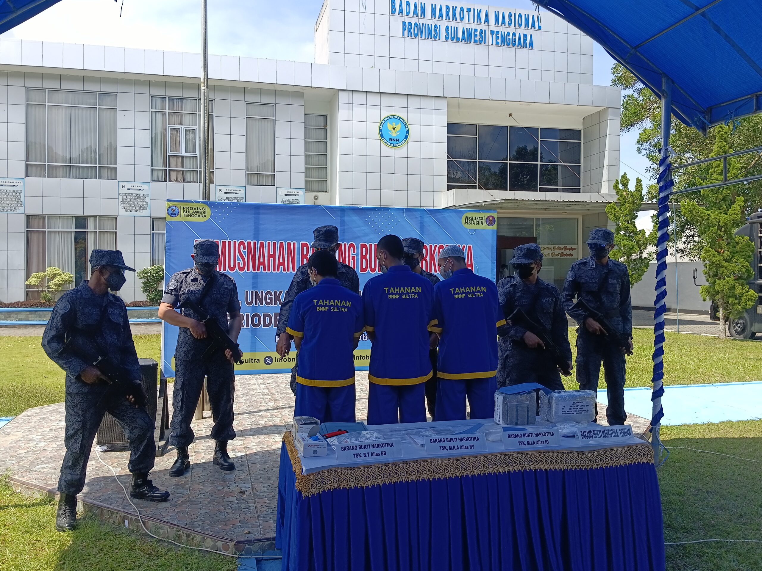Kendari, Sultrust.com — Empat kilogram lebih sabu dan ganja dimusnahkan Badan Narkotika Nasional Provinsi (BNNP) Sulawesi Tenggara (Sultra).