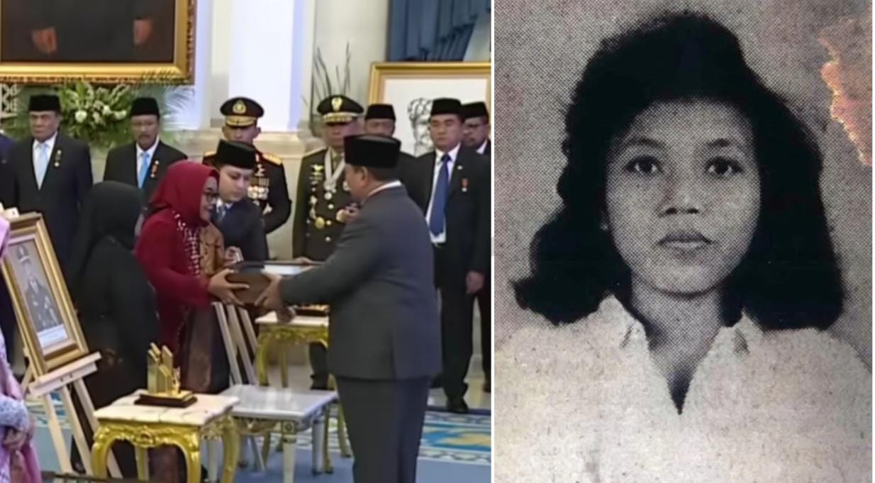 Presiden RI, Prabowo Subianto, saat penganugerahan 10 pahlawan nasional di istana merdeka, dimana salah satunya adalah almarhumah Marsinah sebagai pahlawan Buruh. // Dok : ist