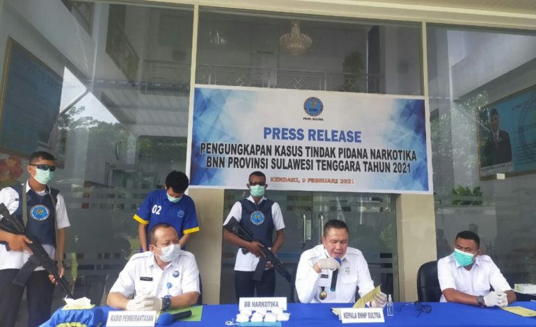 Seorang pemuda berinisial LDS alias F (24) diamankan petugas Badan Narkotika Nasional (BNN) Provinsi Sulawesi Tenggara (Sultra), Jumat (5/2) sekitar pukul 06.00 Wita.