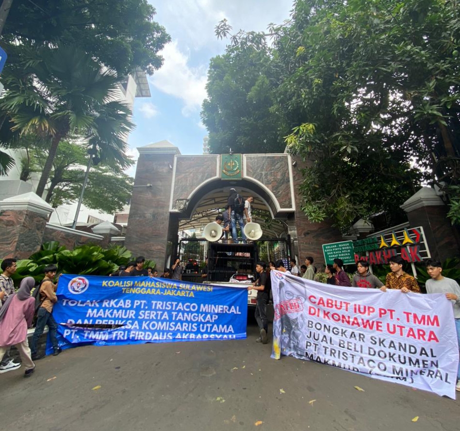 Dalam aksinya, mereka menuntut penegakan hukum atas dugaan pelanggaran tambang nikel oleh PT Tristaco Mineral Makmur (TMM). Massa aksi juga menyeret nama Komisaris Utama PT TMM, Tri Firdaus Akbarsyah, yang disebut harus dimintai pertanggungjawaban hukum.