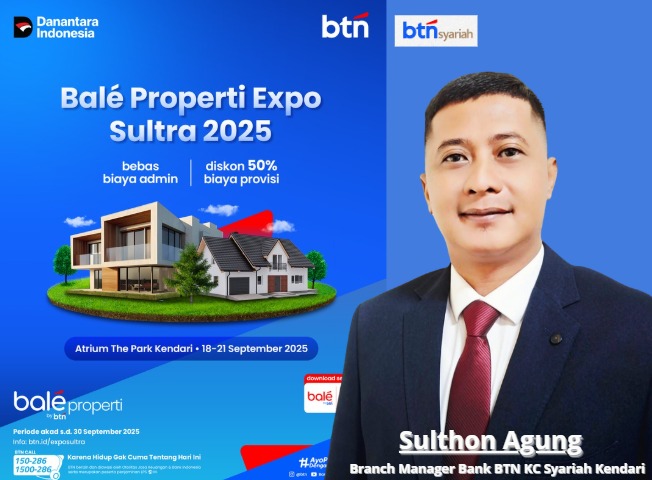 Kendari, Sultrust.com – Bank BTN KC Syariah Kendari optimistis mampu mendorong kembali gairah pasar perumahan di Sulawesi Tenggara (Sultra) lewat gelaran Bale’ Properti Expo Sultra 2025 yang akan resmi dibuka pada 18 September mendatang di Atrium The Park Mall Kendari.