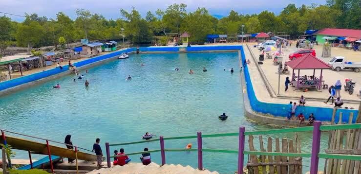 Permandian Topa terletak dipesisir laut dan dibatasi oleh pepohonan mangrov, permandian air payau ini menawarkan berbagai fasilitas untuk pengunjung khusus anak-anak dan orang dewasa, mulai dari bermain ban, seluncuran, hingga wahana bermain bebek-bebek.