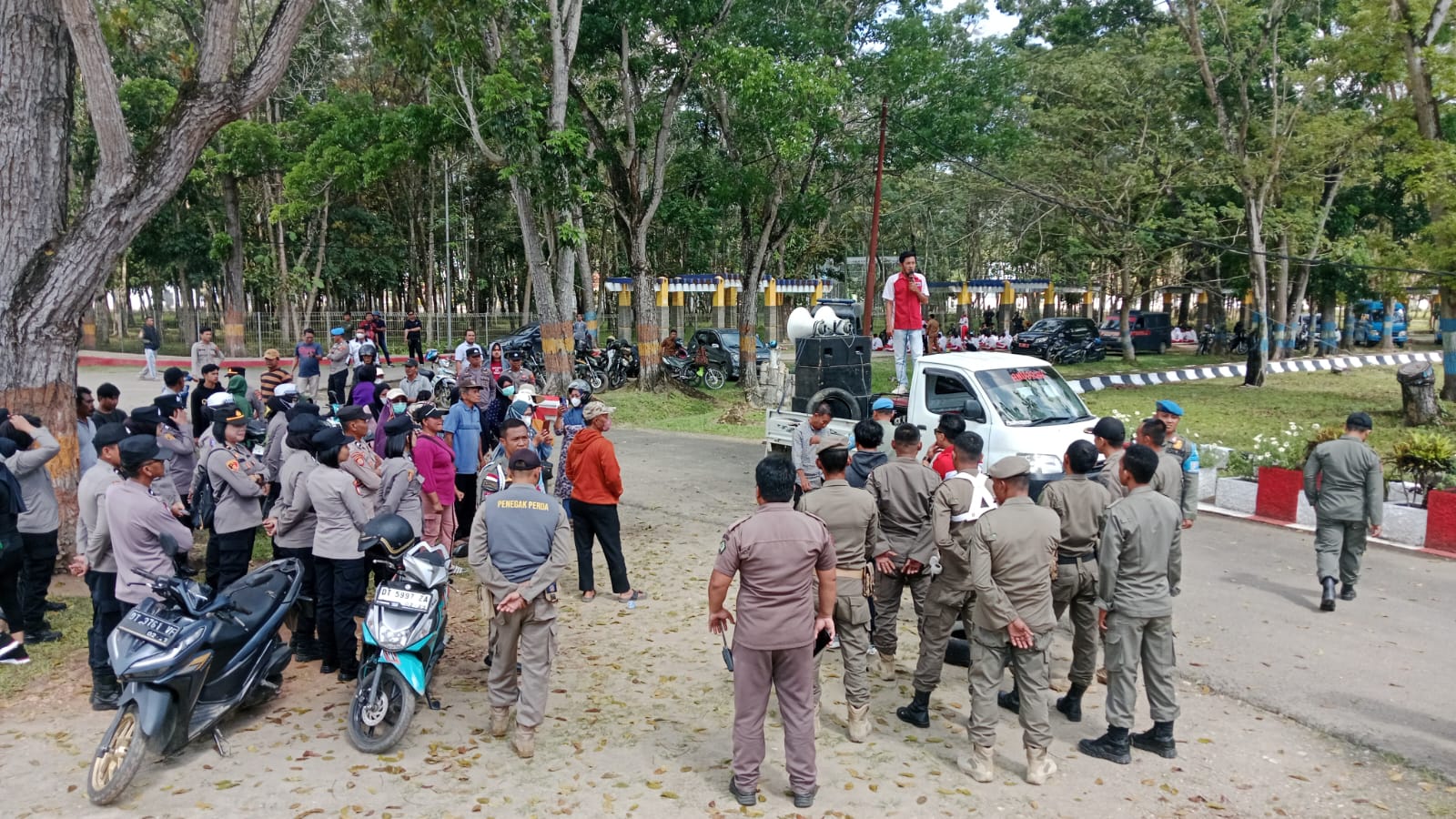 Di hadapan barisan spanduk protes, Koordinator Aksi, Agus Marwan, menuding adanya pungutan liar (pungli) terhadap pedagang kaki lima (PKL) di Pasar Wawotobi.