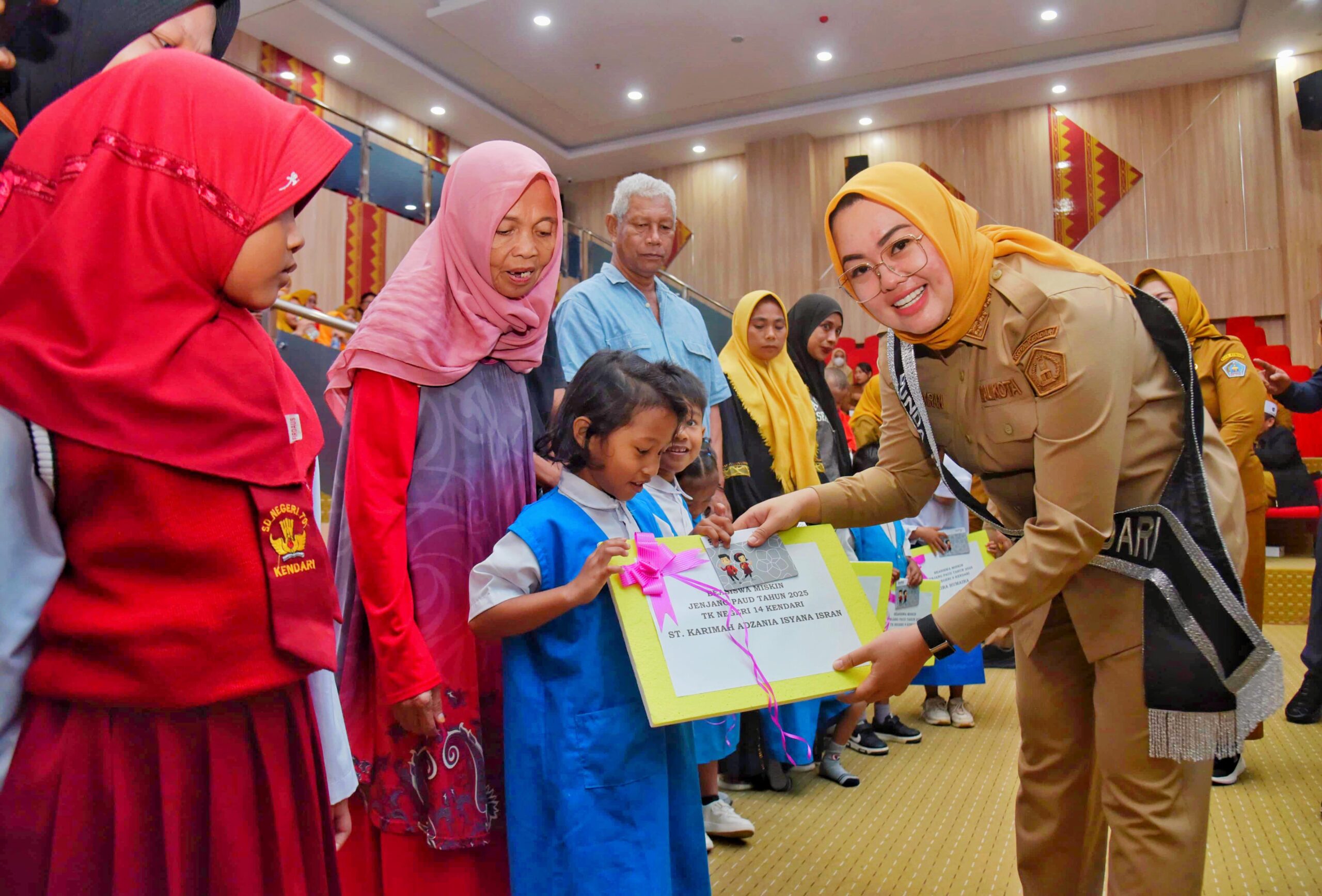 Dalam kesempatan itu, Bunda PAUD Kota Kendari juga menyerahkan bantuan beasiswa pendidikan untuk siswa PAUD, SD, dan SMP. Total beasiswa yang disalurkan mencapai ratusan juta rupiah, dengan rincian masing-masing Rp1 juta bagi 125 siswa PAUD, Rp1,5 juta untuk 610 siswa SD, serta Rp1,8 juta bagi 315 siswa SMP.