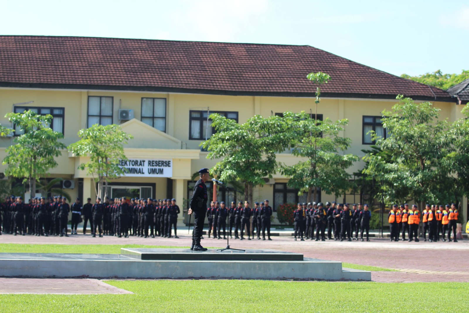 Apel personel dipimpin oleh Dansat Brimob Sultra, Kombes Pol Sugianto Marweki, S.I.K., di Lapangan Apel Presisi Polda Sultra.