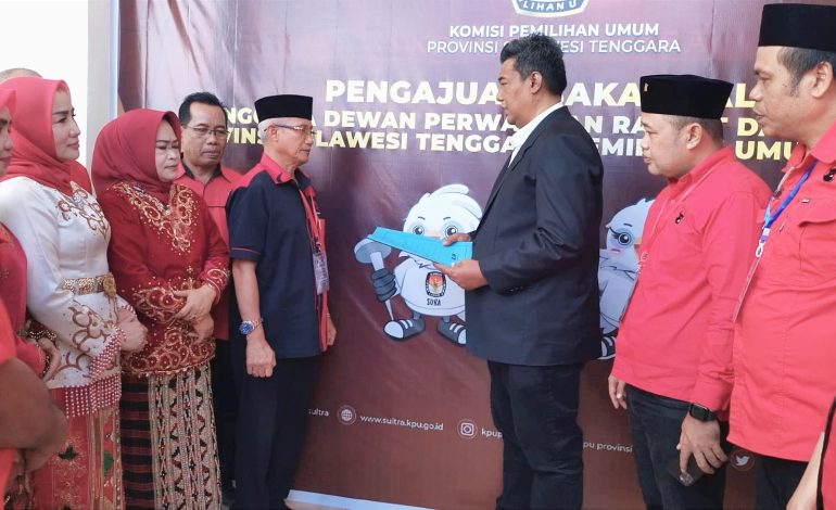 Ketua DPD PDI Perjuangan Sultra, Lukman Abunawas telah menyerahkan langsung berkas pendaftaran ke Kantor Komisi Pemilihan Umum (KPU) Sultra, Kamis (11/05/2023).