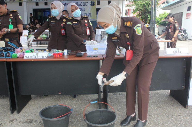 Barang bukti dimusnahkan menggunakan metode yang beragam, disesuaikan dengan jenisnya, mulai dari penghancuran dengan bahan kimia, pembuangan melalui limbah khusus, hingga pembakaran dan pemotongan.